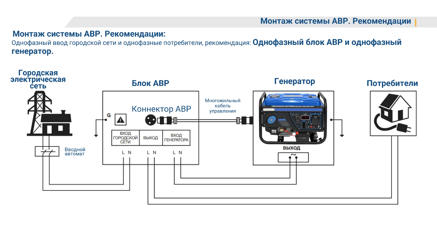Блок автоматики позволяет использовать генератор для резервного энергоснабжения дома, бизнеса или общепита. При отключении электричества он автоматически запускает генератор и переключает питание. Зимний режим упрощает запуск при низких температурах.
